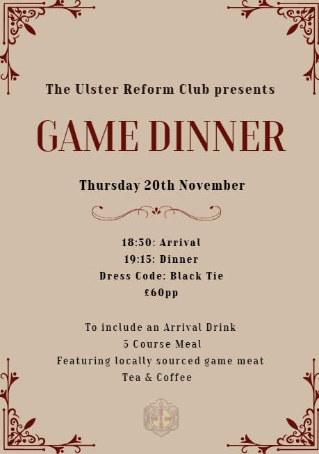Join us for the Annual Game Dinner, a cherished Club tradition featuring the finest local game and seasonal flavours.